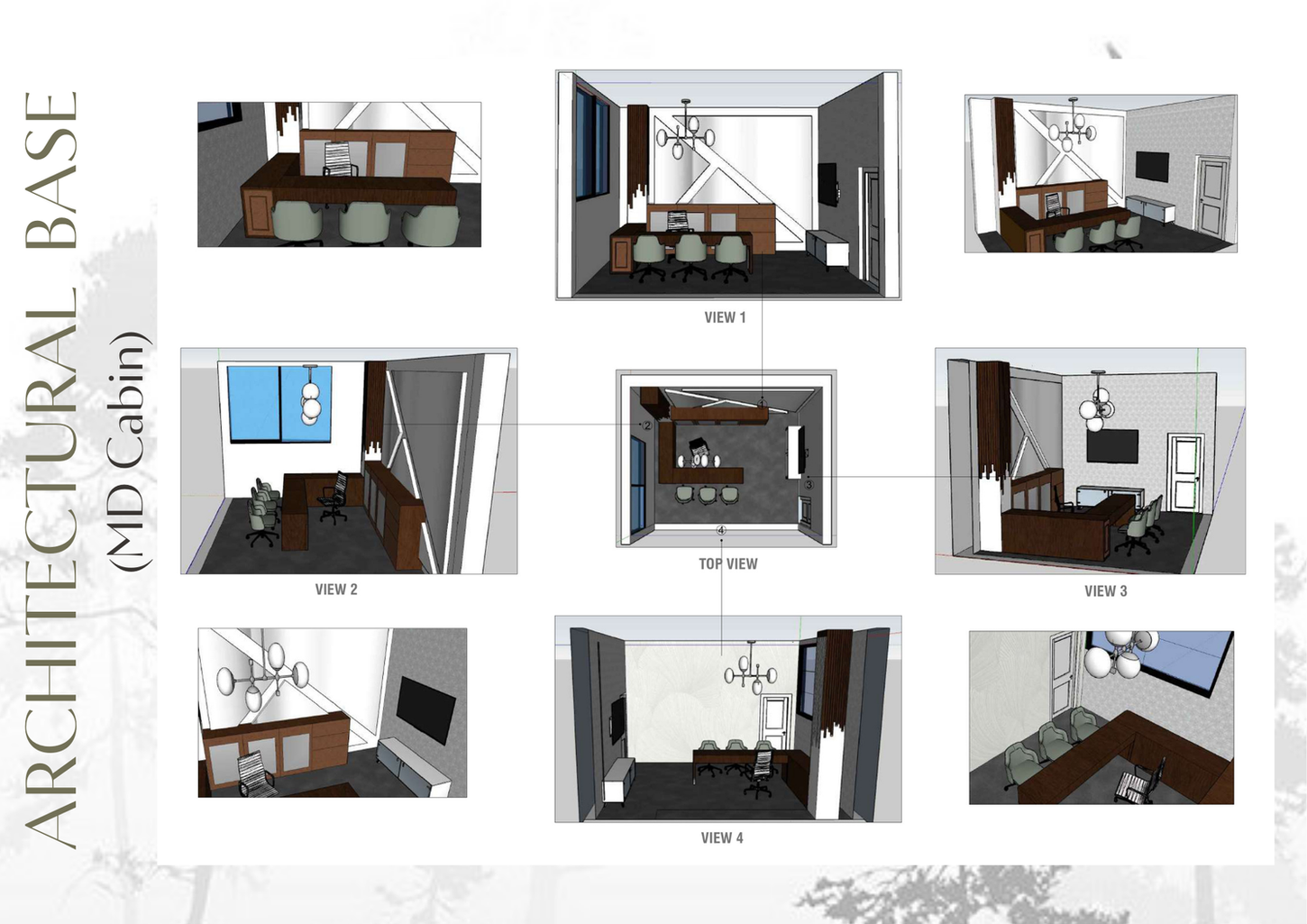 The "Architectural Base" project aims to create a cutting-edge architecture office that epitomizes the harmony between modern design and biophilic principles. The objective is to design an innovative workspace that not only captivates aesthetically but also promotes the well-being of its occupants by fostering a deep connection with nature.